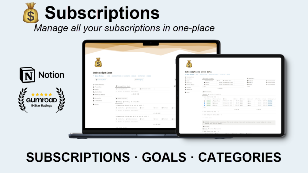 Notion Subscriptions template is designed to help you manage your subscription services in one place. Say goodbye to forgetting payment dates and missing out on benefits. Take control of your subscriptions today!