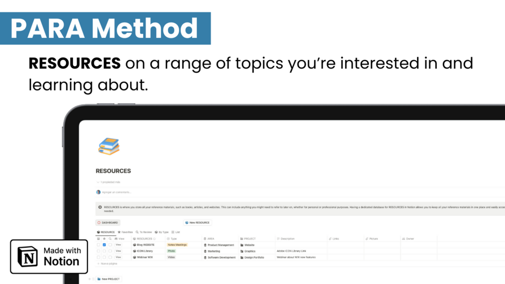 ⚙️ RESOURCES Organize information, references, courses, or any other materials that feed into your projects or areas.